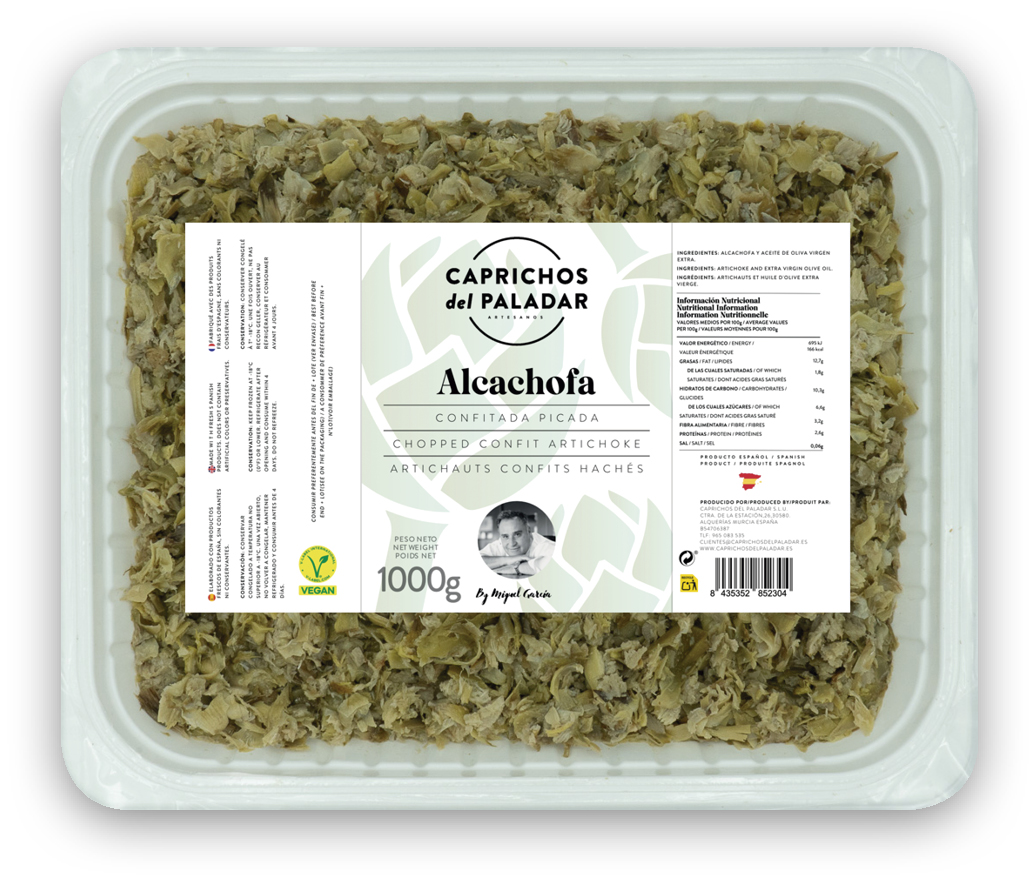 Fabriqué avec des produits frais d’Espagne, confit dans l’huile, sans colorants ni conservateurs. Rester gelé à Tª de -18°C. Une fois ouvert, ne pas recongeler, conserver au réfrigérateur et consommer avant 4 jours.
